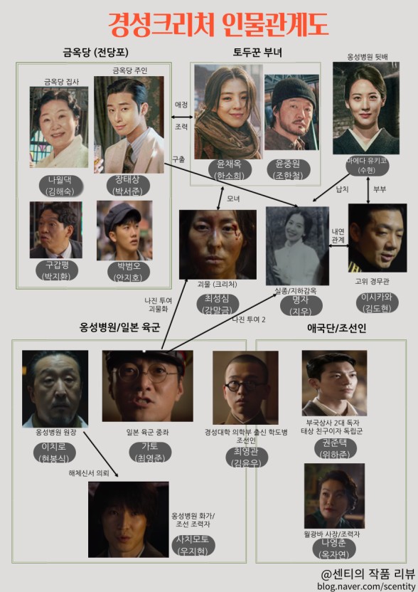 '경성크리처'는 스릴러드라마 보다는 로맨스드라마 같은 느낌을 더 많이 받았습니다. 옹성병원에서의 일들이 더 확장되고 괴물이라는 존재에 대한 공포와 그의 위력에 대한 부분이 잘 나타났으면 하는 바램이 있었지만 남여 주인공의 로맨스로만 연결이 되는 부분이 있어 아쉬웠습니다. 그럼에도 불구하고 두 주인공이 떨어져있는 장면이 많아 완전한 로맨스도 아니였고, 아주 무서운 스릴러도 아니여서 이것도 저것도 아닌 아쉬운 부분이었습니다.